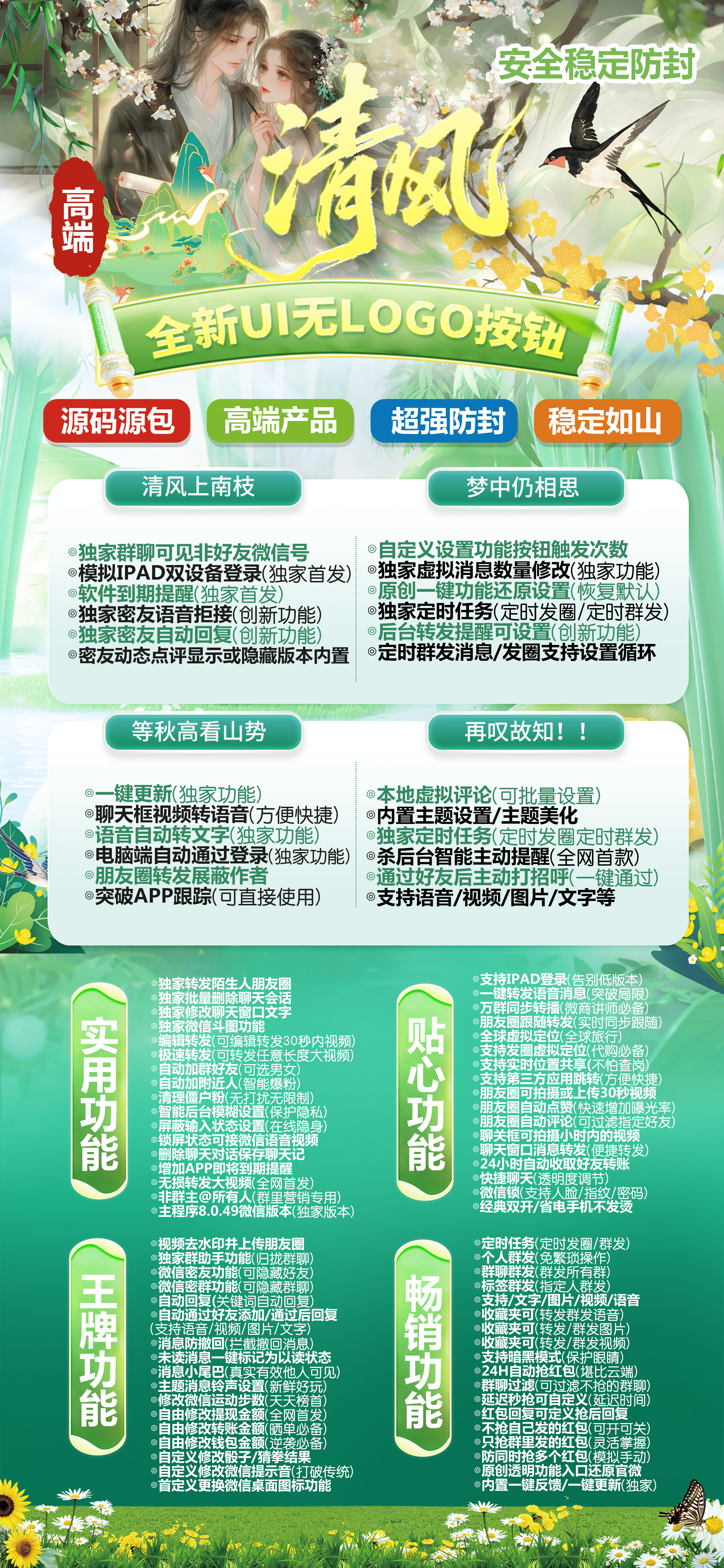 想要体验全新设计、实现多项功能的苹果TF清风吗?不用犹豫了!TF清风为您带来全新视觉设计,一键轻松实现各种实用功能,让您的苹果设备焕然一新!TF清风的功能特点:1、全新视觉设计:TF清风经过全新视觉设计,UI轻量化一触即发,让您的使用体验更加流畅愉悦。2、适配官方版本:我们的版本完全适配官方8.049版本,保证您使用的是正版,让您远离虚假版本的困扰。3、爆粉神器:TF清风具备暴力添加群内好友功能,男女可选,是您爆粉的神器,让您的社交圈快速扩大。4、朋友圈干兆大视频转发:我们的软件支持极速转发朋友圈干兆大视频,还可以修改文案,让您的朋友圈更加丰富多彩。5、一键批量设置个人相册:TF清风支持一键批量设置个人朋友圈相册,可以私密或删除,让您的朋友圈更加个性化。6、全球虚拟定位:我们的软件支持全球虚拟定位,包括位置共享和防查岗功能,让您随时随地都能保持隐私安全。7、内置实用工具:TF清风内置计算器,无需返回桌面即可使用,是微商必备神器,让您的工作更加高效便捷。8、一键检测僵尸粉:我们的软件支持一键快捷检测和删除僵尸好友,保证您的社交圈清爽干净。9、最新版密友功能:TF清风全新推出最新版密友功能,摇一摇隐藏您和TA的小秘密,让您的私密信息更加安全。10、完美兼容IOS系统:我们的软件完美兼容IOS最新系统,是全网首发,保证您的使用体验稳定流畅。赶快下载TF清风,体验多项实用功能,让您的苹果设备焕然一新!