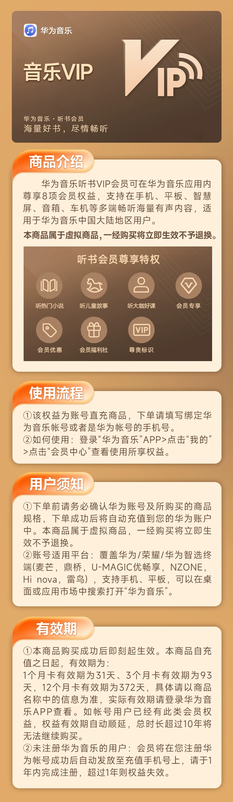 【账号直充】华为-华为音乐听书VIP『3个月』接口直充丨立即到账丨24小时全天秒单!-老顾客