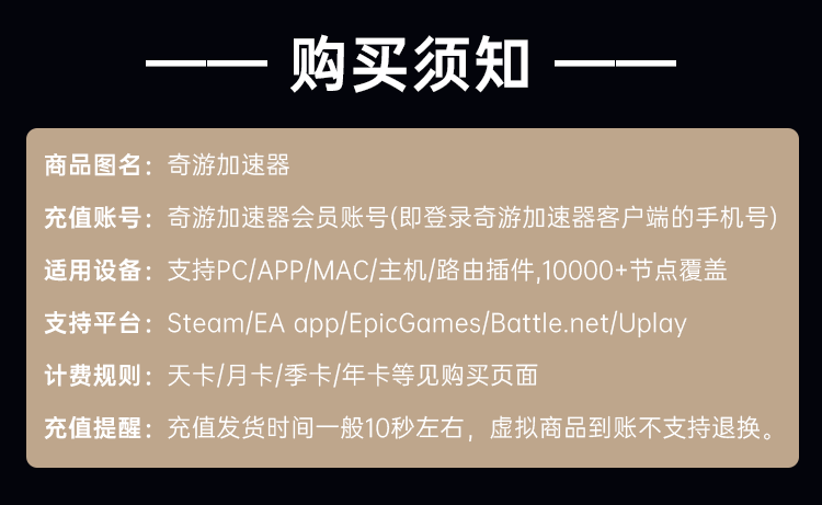 【账号直充】奇游加速器SVIP『6小时』接口直充丨立即到账丨24小时全天秒单!-老顾客